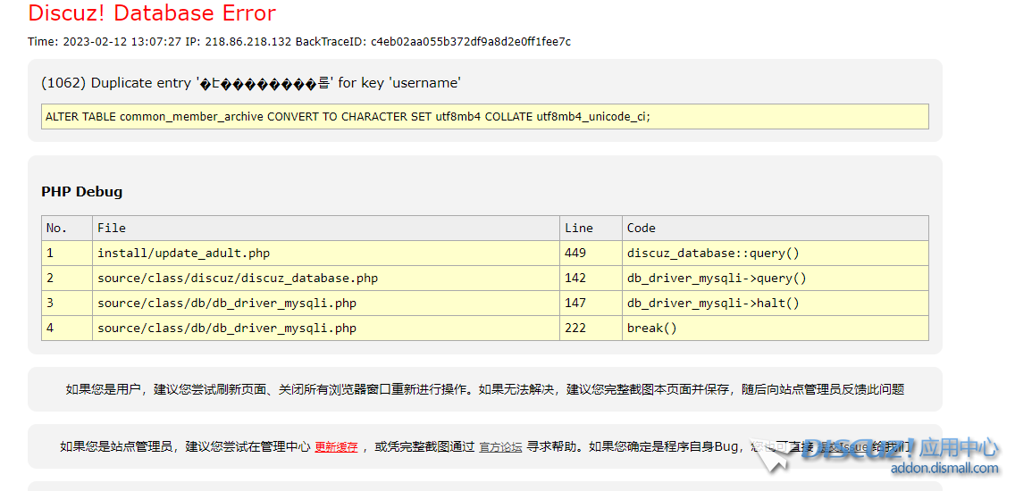 Q009:升級過程中提示(1062) Duplicate entry '***' for key 'username'ALTER TABLE common_member CONVE ...