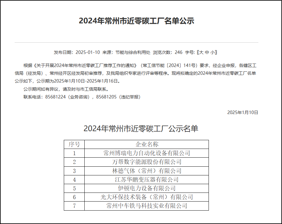 喜報!服務客戶強勢入選近零碳工廠!